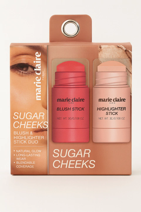 Realce sua beleza com praticidade e acabamento natural usando o Sugar Cheeks Blush & Highlighter Stick Duo da Marie Claire Paris. Um duo essencial para uma maquiagem iluminada, fresh e elegante, ideal para o dia a dia ou ocasiões especiais.